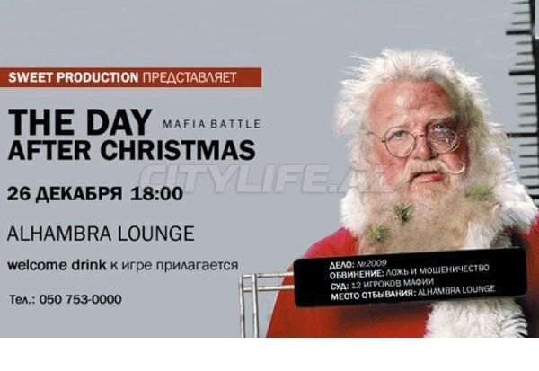 Əziz dostlar məzəli oyun Mafia davam edir - Mafia Battle от Sweet Production! Bu dəfə siz vəkil rolunda dəvət olunursunuz, ittiham edilən isə - Şaxta Baba özü olavaqdır! ALHAMBRE Lounge`da keçirilən tədbir sizləri darıxmağa qoymaz! Bütün qonaqlara - welcome drink, xanımlara - sponsorlardan hədiyyələr!