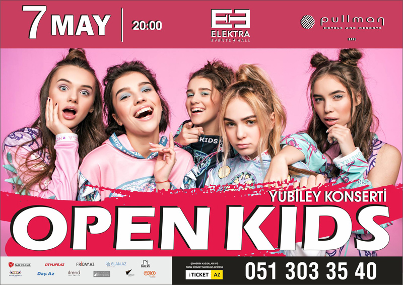 Mayın 5-i Bakıda "Open Kids" qrupu çıxış edəcək. Ətraflı məlumat əldə etmək üçün qeyd olunan nömrə ilə əlaqə saxlayın: (+994 51) 303 35 40