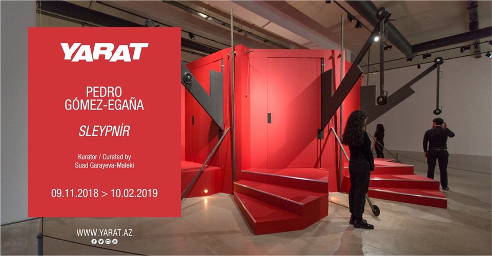 YARAT Müasir İncəsənət Məkanı sizi, Norveçdə yaşayan və fəaliyyət göstərən Kolumbiya əsilli rəssam Pedro Qomes-Eqanyanın “Sleypnir” adlı fərdi sərgisinə dəvət edir. Sərgidə nümayiş olunan rəssamın yeni və əhəmiyyətli sənət əsəri özünün daim təzələnən “Rəsədxana” (“Observatory”) silsiləsinin bir hissəsidir. YARAT Mərkəzinin məkanında Pedro Qomes-Eqanya tərəfindən qurulmuş bu geniş miqyaslı pavilyon strukturlu instalyasiya tamaşaçıya xüsusi multisensorlu, immersiv təsir göstərir. Öz ilhamını Xəzər bölgəsindən alan bu sərgi, YARAT-ın Bakı şəhərinin müxtəlif məkanlarında həyata keçirəcəyi genişmiqyaslı, bir çox fənləri əhatə edən teatr və performanslar tədbiri, M.A.P. Festivalı ilə eyni vaxta təsadüf edir.