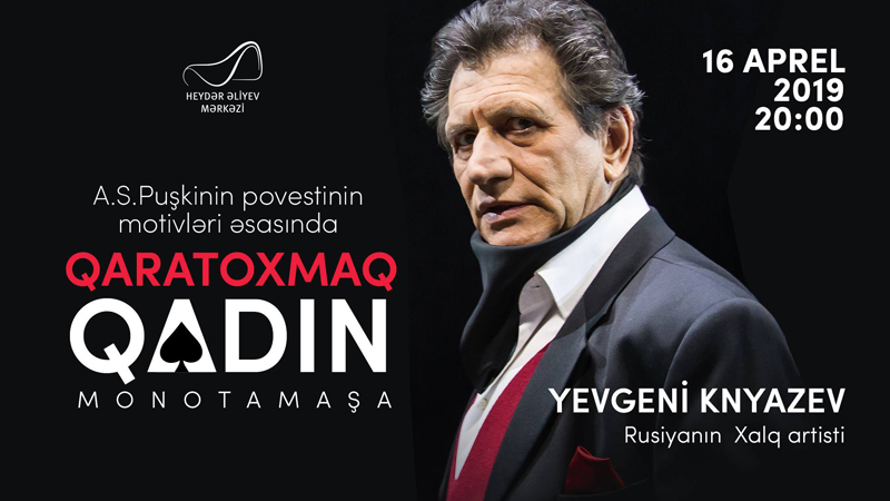 Aprelin 16-da Heydər Əliyev Mərkəzində Rusiya Federasiyasının Xalq artisti Yevgeni Knyazevin dahi rus şairi Aleksandr Puşkinin «Qaratoxmaq qadın» povestinin motivləri əsasında monotamaşası təqdim olunacaq. Y.Knyazev tanınmış teatr və kino aktyorudur. O, teatr məktəbində təhsilini başa vurduqdan sonra 1982-ci ildə Moskvada Y.Vaxtanqov adına Teatrda fəaliyyətə başlayıb, 1996-cı ildə həmin teatrda «Qaratoxmaq qadın» tamaşasında German rolunu oynayıb. Əsərə Pyotr Fomenko quruluş verib. Bundan illər sonra Y.Knyazev səhnədə tərəf müqabillərindən imtina edir və «Qaratoxmaq qadın»ı tək yaradır: yalnız German obrazını deyil, Liza, Qrafinya rollarını da oynayır.