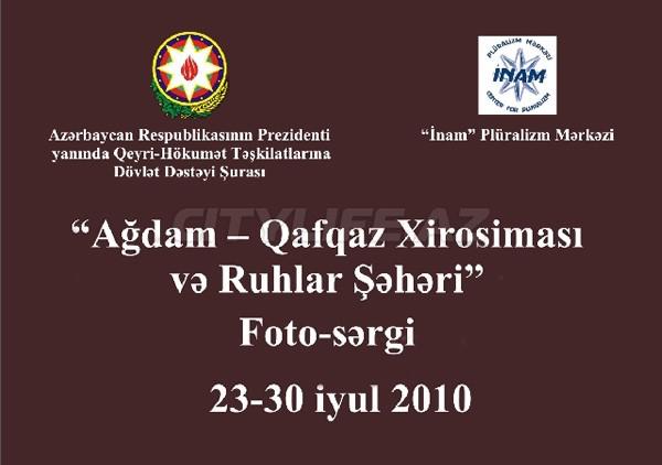 23 iyuldan 30 iyula qədər Azərbaycan Rəssamlar Birliyinin sərgi salonunda "Ağdam -Qafqaz Xirosiması və Ruhlar Şəhəri" foto -sərgisi keçiriləcək. Sərgi "İnam" Plüralizm Mərkəzi və Azərbaycan Respublikası Prezidenti yanında Qeyri -Hökümət Təşkilatlarına Dövlət Dəstəyi Şurası tərəfindən təşkil edilib. Sərgidə Ağdamın işğalına həsr olunmuş 60 -dan çox iş və Ağdam haqqında 8 dəqiqəlik qısametrajlı film təqdim olunacaq.