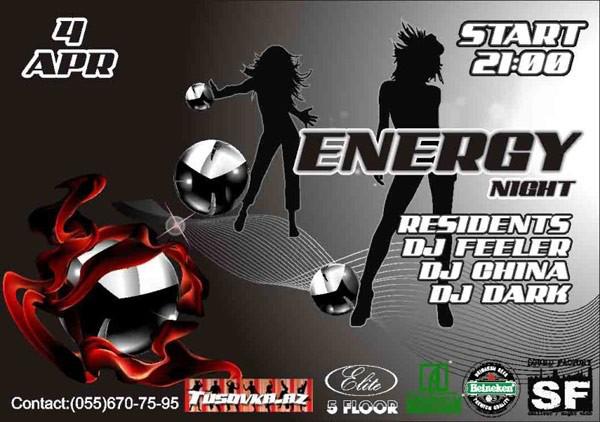 "Energy Night" adlı möhtəşəm gecə bütün energy rəqs sevənlərin nəzərinə! Ancaq bir gün "Stop clubda" DJ Feeler, DJ China və DJ Dark-ın iştiraki ilə sizləi unudulmaz gecə gözləyir!