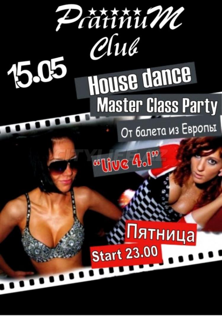 Platinum klubda "House dance Master Class Party" gecə şənliyi baş tutacaq. Gecədə Live 4.1 baletinin iştirkçı qızları tərəfindən master klass təqdim olunacaqdır. Giriş yalnız dəvətnamə ilədir, xanımlar və cütlüklər üçün - azaddır.