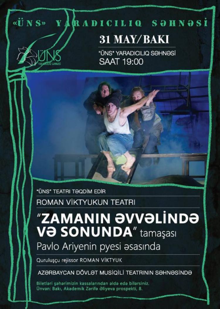 May ayının 31-i Üns yaradıcılıq səhnəsinin təşkilatçılığı ilə Roman Vityukun teatrı Azərbaycan dövlət musiqili komediya teatrında “Zamanın əvvəlində və sonunda” adlı tamaşa təqdim edəcək. Gənc dramaturq Pavlo Arienin pyesi əsasında.