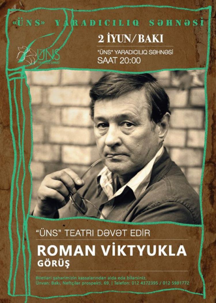 2 iyun ÜNS Yaradıcılıq teatrın səhnəsində, sizləri tanınmış rejissor Roman Viktyuk ilə görüş gözləyəcək.