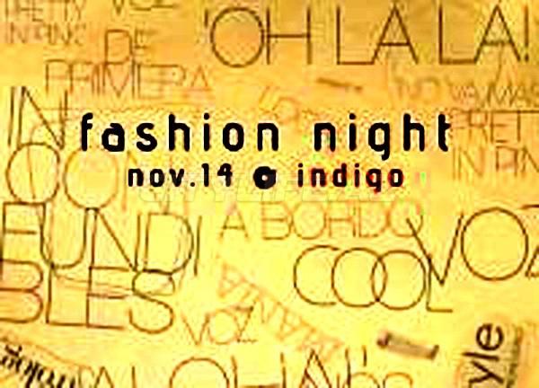 Modelyer Tutu Kərimbəyli təqdim edir - "Fashion night" İndigoda! Gecədə modelyerin 2009-cu ilin son kolleksiyasından modellər təqdim olunacaqdır. Həmşinin - modellərin nümaişi, aksessuarlar auksionu, Sabina magazinlər şəbəkəsindən oyun və konkurslar. Caz musiqi sevənlər üçün caz ifaçısı Diana Hacıyeva çıxış edəcəkdir. Lakin shake your body Dj Trosh`dan! Hər müştəriyyə - hədiyyə - musiqi diski.