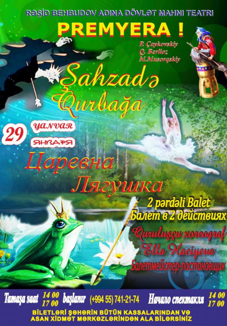 29 Yanvar, Mahnı Teatrın səhnəsində "Şaxzadə qurbağa" nağıl baleti nümaiş olunacaq. Biletləri mahnı teatrından əldə edə bilərsiz.