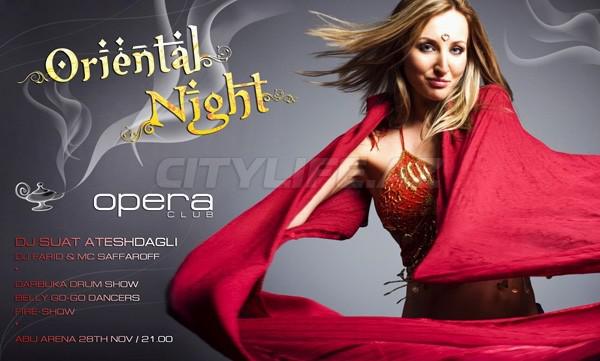 Sehirli lampa, uçan-xalçalar və 1001 gecə nağılları yalnız bizim fantaziyamızda mövcuddur. Yalnız Opera Lounge xəyallarınızı çın etməyə çağırır. Biz bu gecəni sizlərə unudulmaz etməyə çalışmışıq! Türkiyənin ən yaxşı DJ-i, Reina klubun № 1-li rezidenti -  DJ Suat Ateshdagl.. Oriental, Latino, Africanism stilində non stop mix-ilə...
