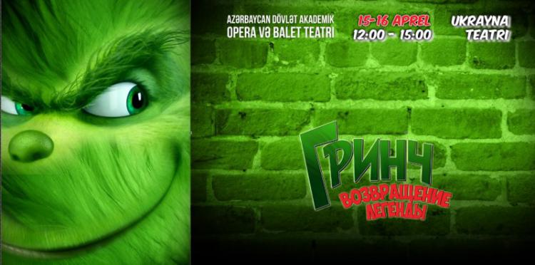 15 və 16 Aprel, Opera və Balet teatrın səhnəsində "Əfsanənın qayıdışı. Qrinç" adlə tamaşa nümaiş olunacaq. Biletləri şəhərin mərkəzləşdirilmış kassalarından əldə edə bilərsiz. Əlaqə: +994 12 598 17 72.