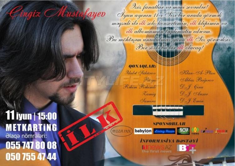 The Solo concert of Chingiz Mustafaev will take place on June, 11th in club Metkarting. The first album, the first clip, the first solo concert! Be the first who will see it! Visitors this evening: Adalat Shukurov, Ragim Ragimli, Roya, Zamik, Samira, Klan-a-Plan, Dj China, Dj Ansar, Dj Emin!