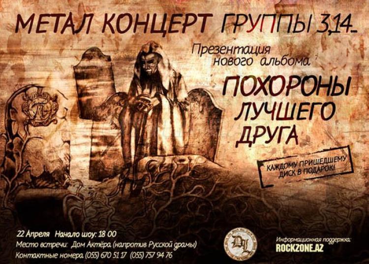 The long-awaited methal concert of "3,14" rock band and the presentation of their new album will take place in the House of the Actor (opposite to Theatre of the Russian Drama). Tickets are available at the entry in day of a concert! Musicians of "Evil Decay" rock band will take part in the concert!