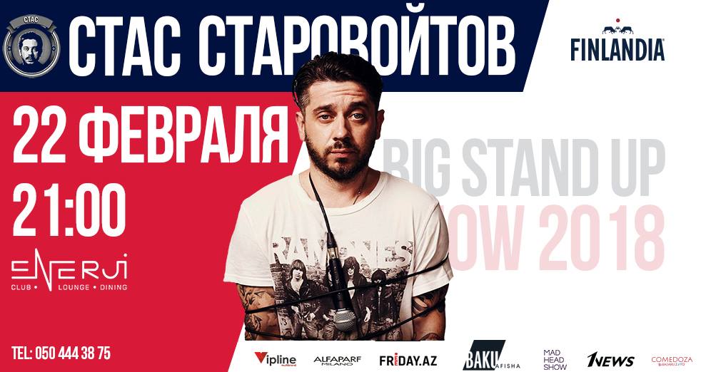 22 февраля звезда Stand Up Show - Стас Старовойтов впервые выступит в Баку с новой концертной программой. Ивент пройдет в одном из самых лучших клубов города - Enerji Club Baku! Вас ждут убойный юмор от Comedoza Baku, розыгрыши ценных подарков от партнеров и afterparty с DJ Seym!