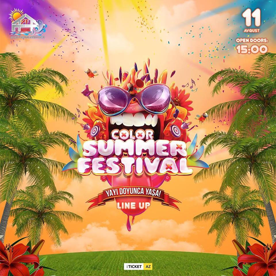 Цвета зовут вас! Ждем вас на "Summer Color Festival", который пройдет 11 августа в развлекательном центре AF Hotel & Aqua Park Complex в Новханы! Билеты можете приобрести в торговых центрах 28 Mall, Ganjlik Mall, в центрах ASAN xidmət, во всех кассах города и на сайте www.iticket.az