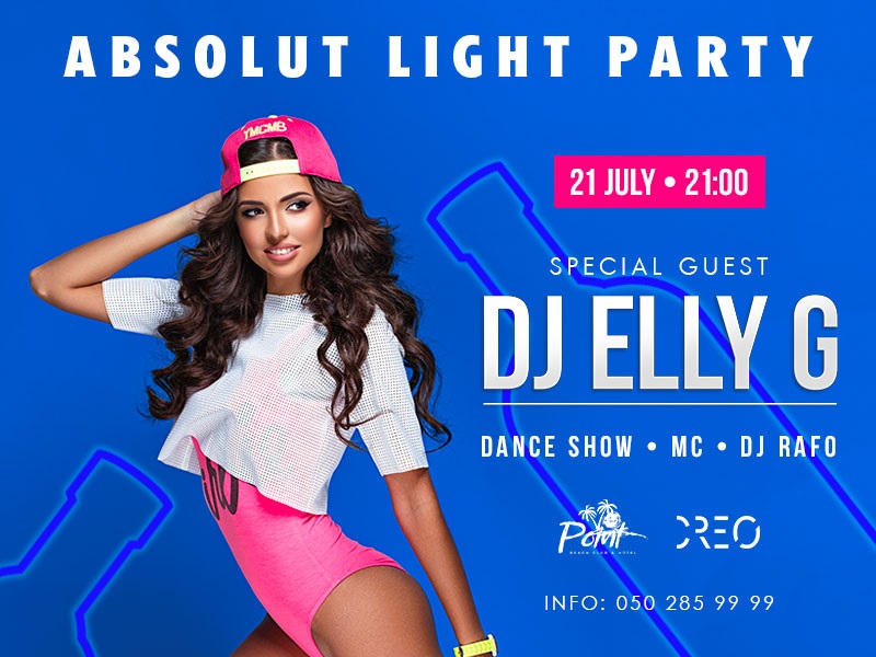 21 июля в самый разгар летнего сезона компания Absolut подарит вам волшебную, сумасшедшую и незабываемую вечеринку «Absolut Light Party» в топовом пляжном клубе Point Beach Club. В этот вечер особым гостем выступит очаровательная DJ Elly G из Киева с самыми зажигательными трэками! Также вас ждёт эксклюзивное танцевальное шоу под изумительные трэки DJ Rafo, яркое выступление позитивного MC, много интересных сюрпризов и конкурсов и просто непревзойдённая атмосфера на берегу моря!