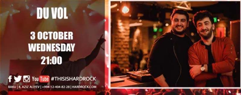 Кто-то ждет перемен, а у нас они уже наступили! Октябрь врывается в Hard Rock Cafe Baku и объявляет вечер с Vedad (живое выступление) и DU VOL (ди-джей сет)! Не терпится объявить, что уже с 8-и вечера 3-го октября мы сможем стать свидетелями этих перемен!