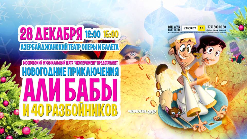 Московский музыкальный театр "Эксперимент" представляет.Тайны Пещеры Сокровищ Древнего Востока, противоборство Сил Добра и Зла, знакомые герои, чарующая арабская музыка и зажигательные танцы, чудеса и превращения, а также, вечная мудрость восточных философов, дошедшая до наших дней вместе с одной из самых известных сказок мира – на уютной сцене Театра Оперы и Балета, которую расскажет сам Дед Мороз, а Снегурочка с героями этой истории подарят маленьким и взрослым зрителям новогодние игры и конкурсы с замечательными призами и сладкими праздничными подарками!