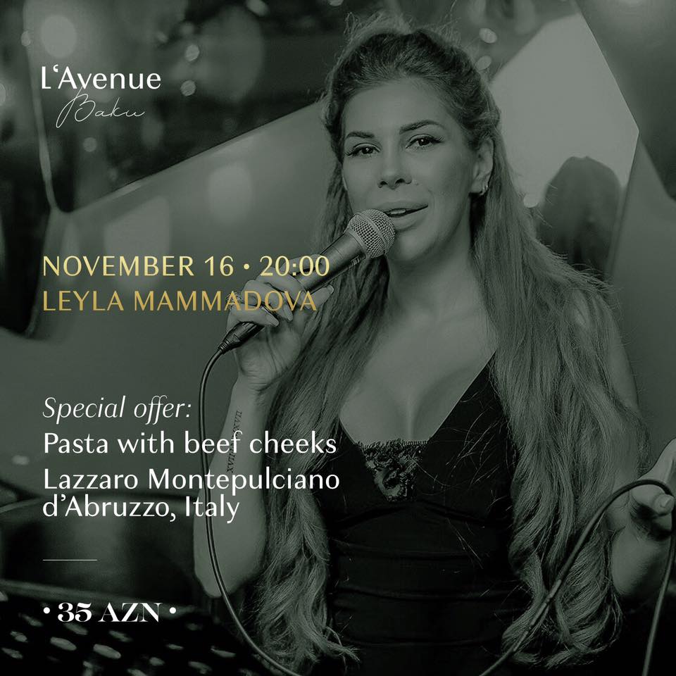 А музыкальное сопровождение в эту пятницу Вам подарит неповторимая Лейла Маммадова!