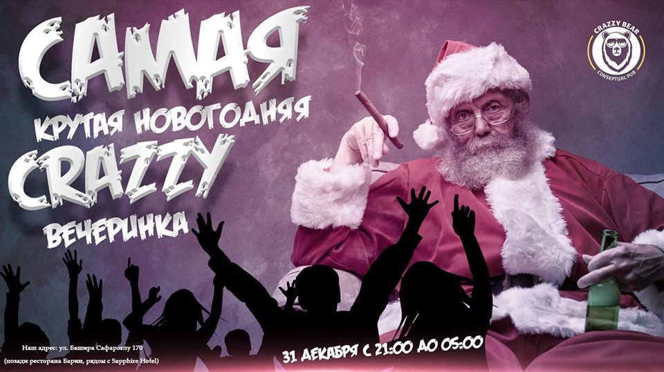 Сделайте себе крутой подарок на Новый Год, проведите его в CraZzy Bear! Драйв и веселье вам обеспечат отличная живая музыка и DJ, веселый ведущий, интересные конкурсы и потрясающая атмосфера! Вы заслуживаете того, чтобы потусить от души!