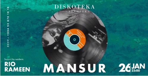 Если вы пока не решили как проведете свою субботу, то пора резервировать столик в DISKOTEKA! В неповторимом интерьере с изысканным и виртуозным меню,  в музыкальном сопровождении от наших резидентов DJ RIO и DJ Rameen, специальным гостем этого вечера станет DJ Mansur. Ждем вас 26 января!