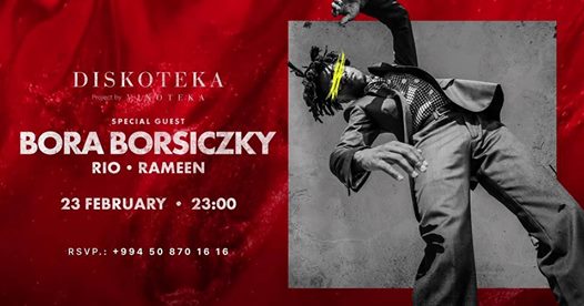 Встречаем субботу со вкусом, настроением теплых эмоции и с яркими впечатлениями от нашего специального гостя Bora Borsiczky. Изысканные напитки, музыкальный фейерверк от наших резидентов RIO и Rameen - лучшее сочетание для праздника.