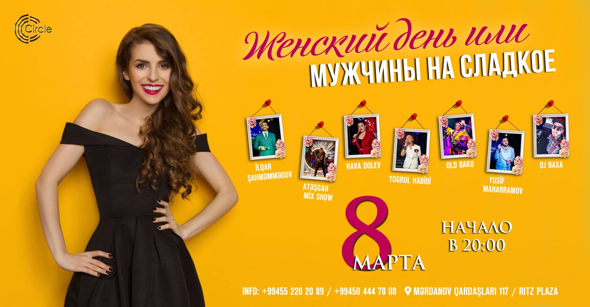 Близится самый нежный праздник в году - 8 Марта! День, когда Вам можно всё! Готовьте свои лучшие наряды, обзванивайте подруг и самое главное не забудьте забронировать столик в ресторане «Circle», ведь мы подготовили для Вас безумно яркий, музыкальный вечер! 8 марта никто и никогда так не отмечал!