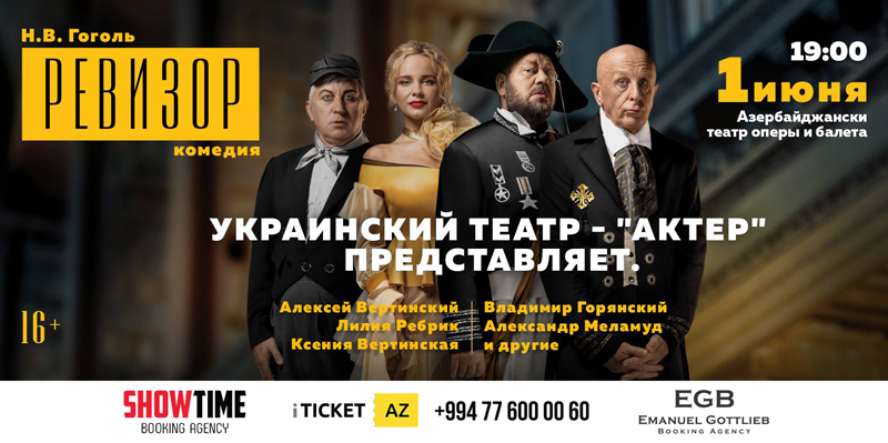 Билеты можете приобрести в торговых центрах 28 Mall, Ganjlik Mall, в центрах ASAN xidmət, во всех кассах города и на сайте https://iticket.az/ru/events/theatre/revizor/10131