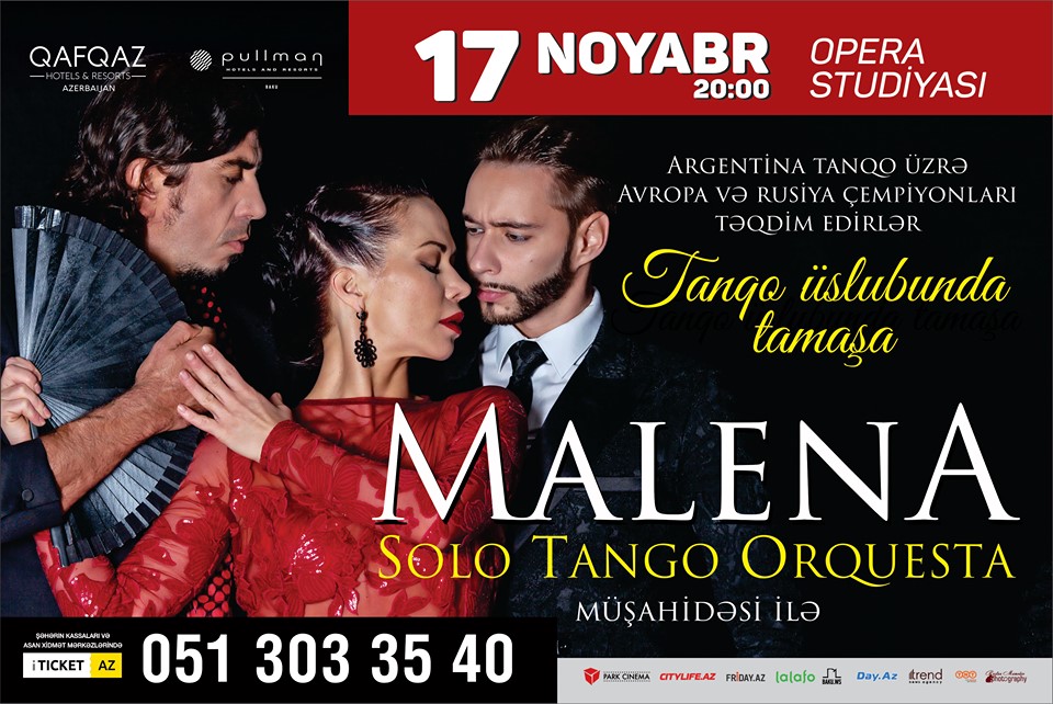 17 ноября в Концертном зале Оперной студии пройдет спектакль «Малена», который сочетает союз двух направлений в танце, музыке и вокале: Фламенко и Аргентинского Танго от чемпионов Европы и России по аргентинскому танго в сопровождении всемирно признанного коллектива "Solo Tango Orquesta"