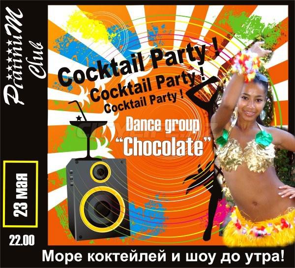Ещё одна неповторимая вечеринка от клуба Platinum! На этот раз Вас ждет море коктейлей и фантастическое шоу от нового балета "Chocolate" до утра! Проведите эту субботню ночь незабываемо! Вход: Строго по пригласительным, девушкам свободный.
