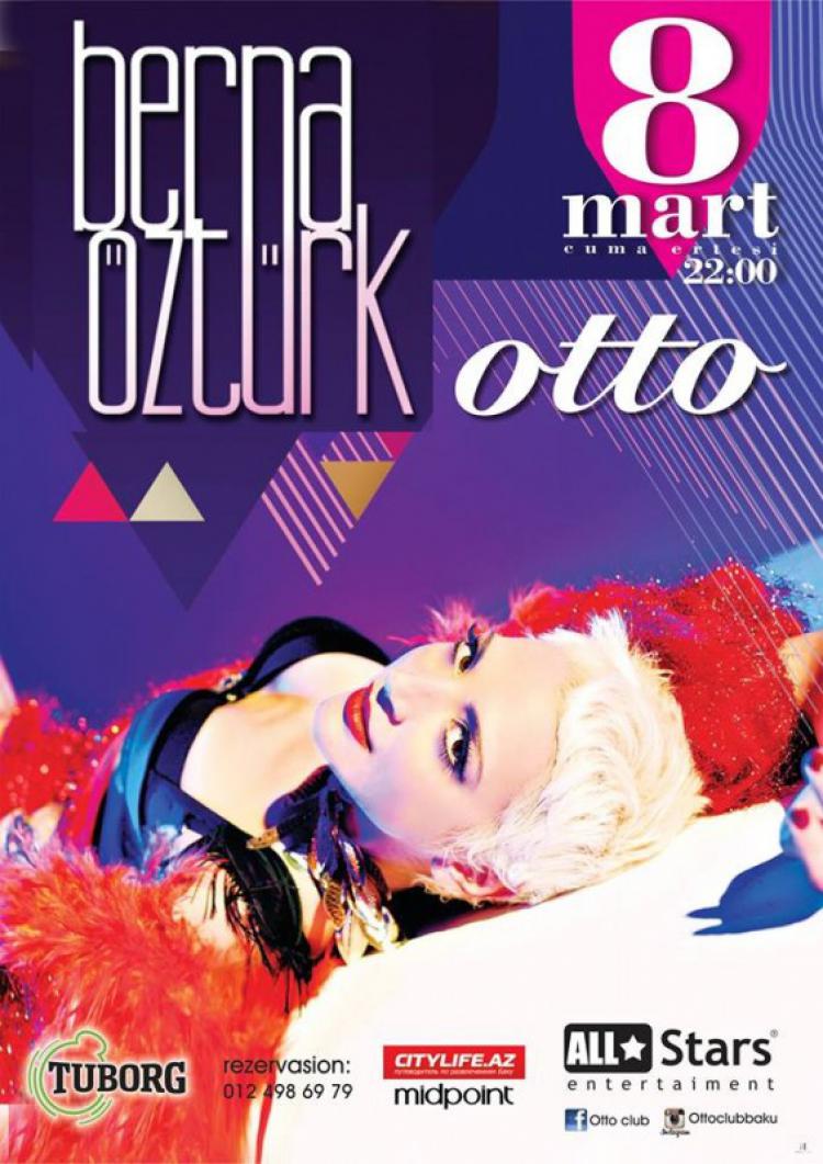 И снова клуб "Otto" приготовил сюрприз для Вас! На этот раз, в субботу, 8 марта, в клубе выступит самый яркий и солнечный диджей - DJ Berna Ozturk! Это будет лучшее шоу, которое вы когда-либо видели! Проведите вечер этого прекрасного весеннего праздника с нами под лучшую музыку!