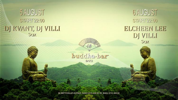 Летний Баку прекрасен своими ночами, особенно в выходные. Город заливается огнями, пульс автострад заряжают энергией, воздух наполняется прохладой и совсем не хочется спать. Buddha Bar Baku приглашает выпить коктейль, заказать ароматный кальян и ваш вечер будет безупречным. Атмосферу дополнит самая лучшая и зажигательная музыка в Баку. В пятницу это будут Dj Kvant, Dj Villi в сопровождении саксофона. В субботу наши резиденты Elcheen Lee, Dj Villi, сакcафон подарят вам массу бодрости и позитива!