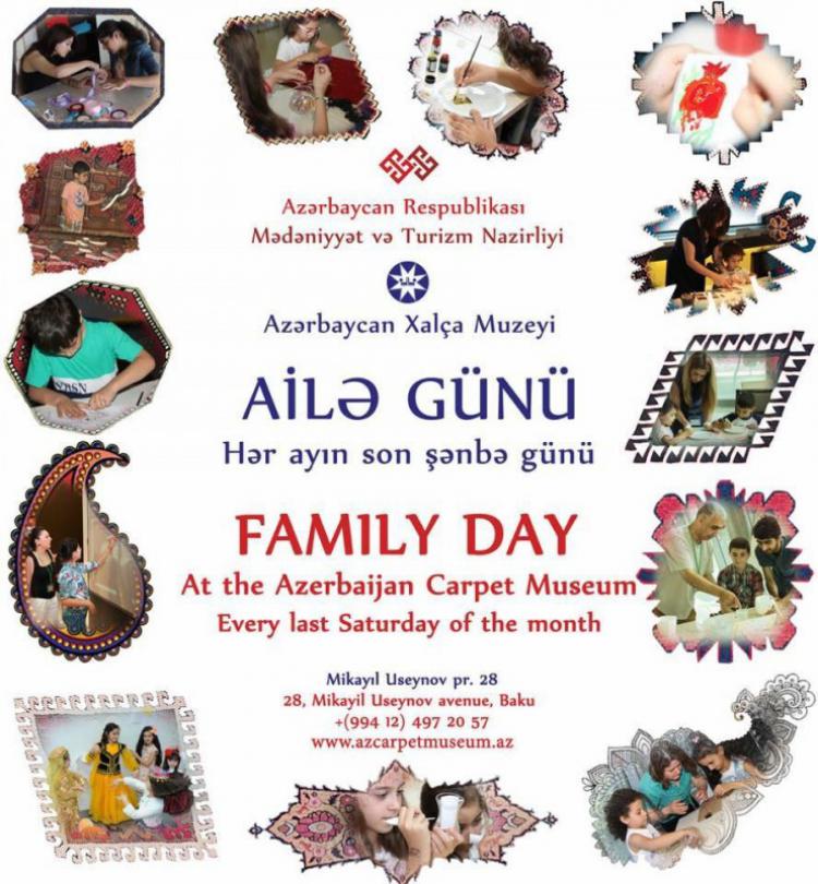 29 октября в Азербайджанском Музее Ковра будет проведён очередной "День семьи". Билеты можно купить в кассе музея: Для детей - 6 AZN. Для взрослых - 6 AZN. 1 взрослый + 1 ребенок - 10 AZN. Подробности по телефону: (+994 12) 497 20 57