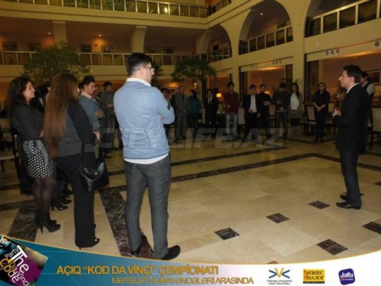 15 марта в «İnternational Trade Center» (ITC Plaza), состоялся турнир среди представителей СМИ по интеллектуальной квест-игре «Код да Винчи». Организаторами выступили Общественное объединение «Дебаты в гражданском обществе», бизнес-клуб «Бизнес Диалог», и клиника офтальмологии под руководством профессора Джарулазаде «Ofko».
