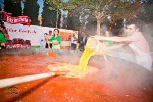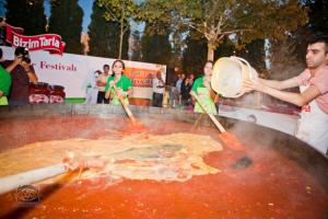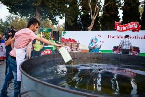 Дорогие Гурманы! В нашем любимом Баку начинают приживаться традиции проведения различных кулинарных фестивалей. Не так давно прошел винный фестиваль и теперь вот решили провести Tomato Fest который постоянно проходит в Испании. Мы, конечно, не будем отмечать его в таком масштабе и не будем бросать в друг друга томатами. Bizim Tarla решил сделать это праздник по- другому, и мы будем готовить все вместе наш любимый "помидор-йумурта"!