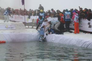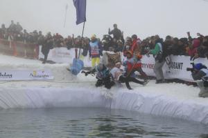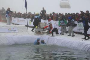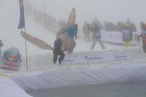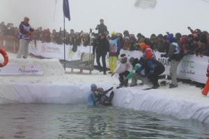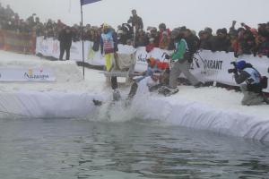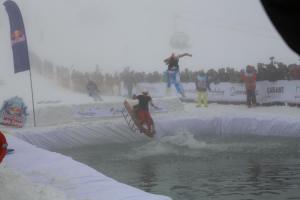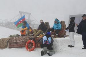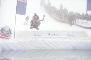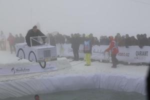 22 февраля на горнолыжном курорте Шахдаг прошло самое креативное костюмированное спортивное соревнование – Red Bull Shakh Carpet! Суть конкурса, название которого в дословном переводе означало как «Шахский ковёр», состоял в том, что участники, одетые в забавные костюмы и снаряжённые любыми приспособлениями для спуска с горы, съезжали со склона протяженностью 80 метров, заканчивающегося небольшим трамплином высотой 80 см, и падали в бассейн глубиной 2 метра, наполненный холодной водой!