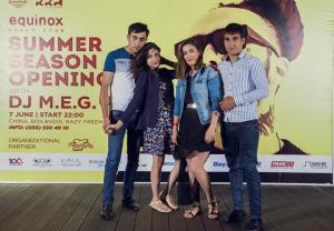 7 июня 2014 в 22:00 мы приглашаем Вас на официальное открытие летнего сезона в Equinox Beach Club Jumeirah Bilgah Beach Hotel. Специальный гость открытия, всеми любимый-DJ M. E.G. А также, резиденты Equinox Beach Club: China, ALIGEE, Razy Freeman, Seym. Go-Go Танцовщицы, салют, фейерверки и много сюрпризов.