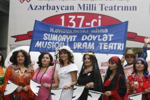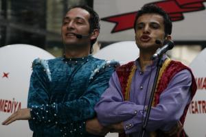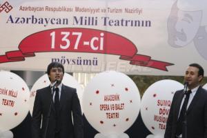 137-й театральный сезон начался с торжественного открытия в Баку, возле здания Театра Юного Зрителя, где при поддержке Министерства культуры и туризма был устроен праздничный концерт, в котором участвовали практически все театральные коллективы Баку и Сумгаита. С прошлого года это стало доброй театральной традицией, начавшейся с открытия 136-го сезона около Театра Русской Драмы. Предлагаем вашему вниманию фоторепортаж с этого красочного и зрелищного действа.