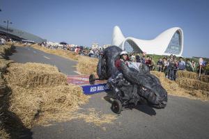 В Баку прошли долгожданные гонки на драндулетах Red Bull Soapbox Race. Баку готовился к этому событию последние несколько месяцев, и событие обещало быть незабываемым. 9 октября у Центра Гейдара Алиева 43 команд на своих самодельных тарантасах соревновались на самое успешное прохождение 300 метровой гоночной трассы. В итоге по количеству баллов за креативность, выступление и скорость, победила команда Bull&Co. На втором месте Nostandart, а третье место завоевала команда Angry Birds. Захир Мурадов, капитан команды Bull&Co сказал: «Было интересно и в тоже время очень сложно. Но, хорошо, что наши усилия не пропали даром. Мы победили и теперь поедем с командой, а мы все друзья-одноклассники, в путешествие. Мы очень рады, всем спасибо». Напомним, что обладатель первого места поедет на Red Bull Air Race в Абу-Даби; команда, занявшая второе место – в Hangar 7 (музей компании Red Bull) в Австрии, а обладатели третьего места получили в качестве приза квадротур в Шахдаг на всю команду. Red Bull Soapbox Race впервые проводился в Баку, и помимо этого, эти гонки были первым крупным проектом компании Red Bull в Азербайджане. Сотни зрителей, креативные драндулеты, забавные сценки, музыка, танцы, сумасшедшие аварии, море позитива – вот чем запомнился Red Bull Soapbox Race. В составе жюри, проводимого в Баку Red Bull Soapbox Race были: шоумен Мурад Дадашов, обладатель серебряной медали Олимпийских игр и золотой медали первых Евроигр дзюдоист Рустам Оруджев, телеведущая Афаг Генджели, телеведущий Гаджи Нуран Гусейнов и певица, победительница конкурса Евровидение-2011 Нигяр Джамал. Первые гонки Red Bull Soapbox Race прошли в 2000 году в Бельгии. С тех пор, эти соревнования прошли в более, чем 100 странах мира и собрали десятки тысяч зрителей на каждом пункте назначения. В Азербайджане Red Bull Soapbox Race проходил впервые.
