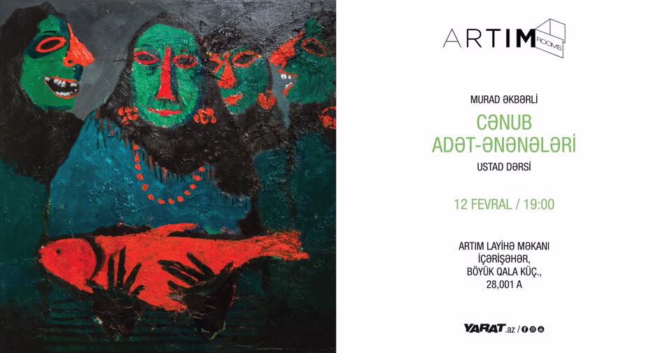 YARAT Müasir İncəsənət Məkanı Sizi ARTIM Layihə Məkanında "Perpendikulyar həqiqətlər" sərgisi çərçivəsində rəssam Murad Əkbərli tərəfindən cənub adət-ənənələri mövzusunda ustad dərsinə dəvət edir.