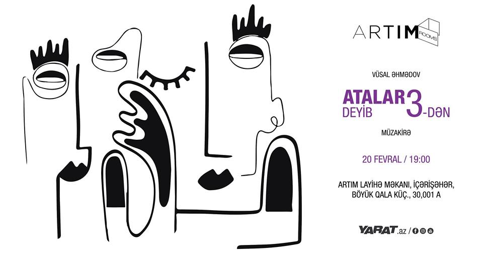 YARAT Müasir İncəsənət Məkanı Sizi ARTIM Layihə Məkanında "Perpendikulyar Həqiqətlər" sərgisi çərçivəsində rəssam Vüsal Əhmədovun iştirakı ilə sosial problemlər üzrə "Atalar 3-dən deyib" adlı müzakirəyə dəvət edir.