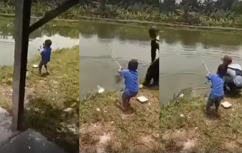 Balaca balıqçı özü boyda balıq tutub