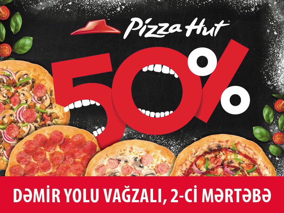 Pizza Hut endirim mövsümünü açıq elan edir. Dəmir yol vağzalının ikinci mərtəbəsində yerləşən restoranda sevimli pizzalara 50% endirim. Culiyetta, Hat Suprim, Barbekyu və Pepperoni pizzasının unudulmaz dadından zövq alın.