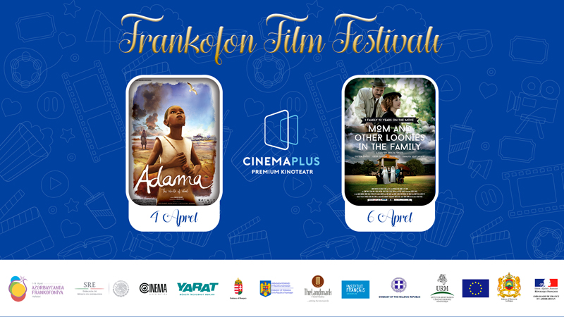 “CinemaPlus Azerbaijan” premium kinoteatrında aprelin 4-ü və 6-sı Frankfoniya kinofestivalı çərçivəsində “Adama” və “Anam və ailəmizin digər qeyri-adi üzvləri” filmlərinin nümayişi keçiriləcək. Festivalda filmlərdən öncə Fransa səfirliyinin nümayəndələrinin çıxışı olacaq.