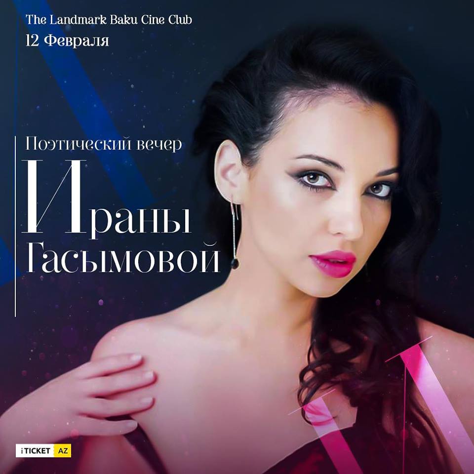 Автор сценария и режиссер четырех короткометражных фильмов на социальные темы Ирана Гасымова в 2013 году выпустила первый сборник стихотворений "Женщина, которая поэт". Во время поэтического представления Ираны Гасымовой "День не всех влюбленных", зрители услышат новые стихотворения поэтессы, из ее нового сборника "Превосходство Иррационального", которое она представит в своем романтическом мини-спектакле. А также у них будет шанс получить сборник в подарок!