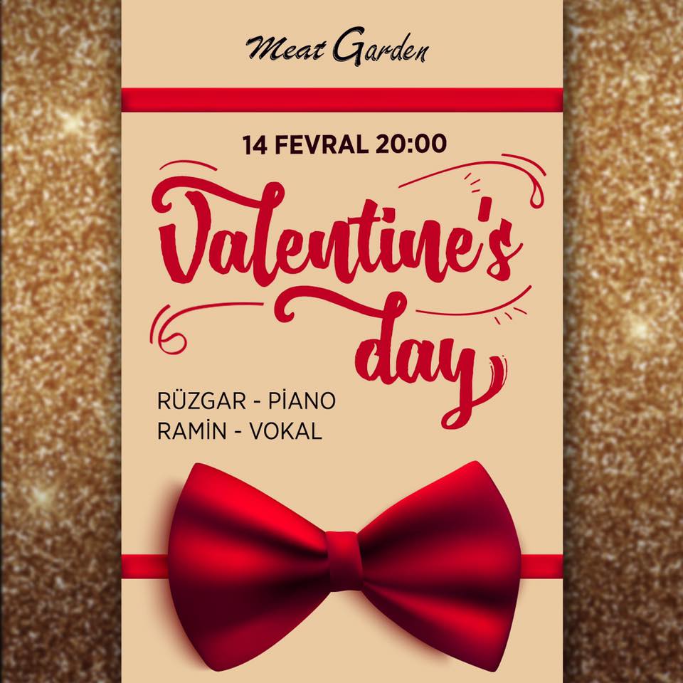 Друзья, приглашаем отметить День Всех Влюблённых в ресторан "Meat Garden"! Мы подготовили для вас два специальных меню за 50 и 80 AZN, а также интересную шоу-программу, где будут выступать пианист Рюзгар и певец Рамин! Ждём всех! Начало в 20:00!