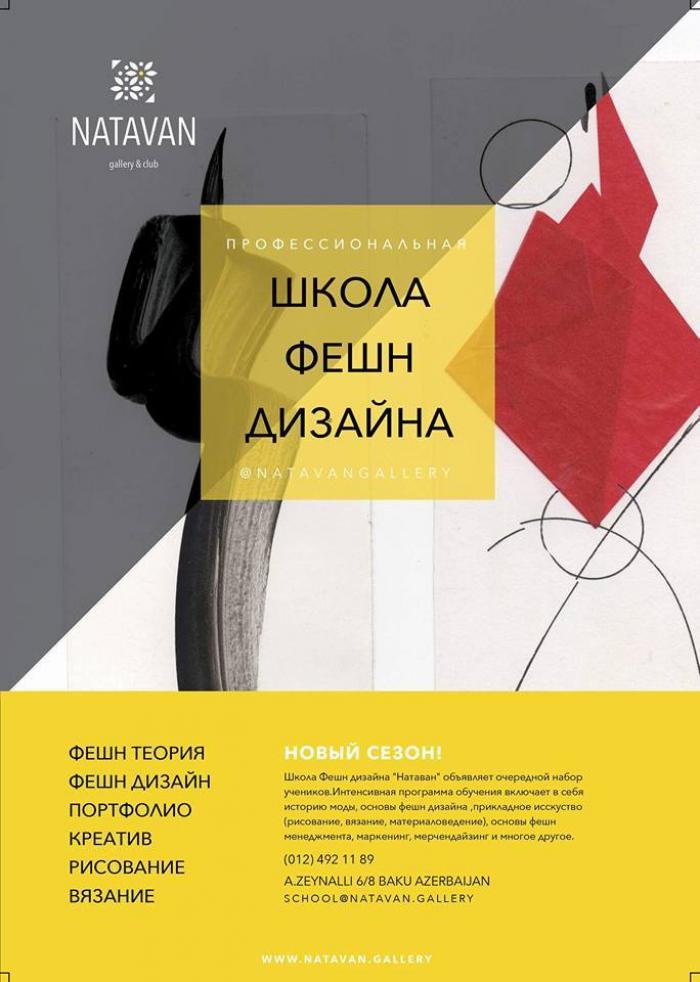 Школа Фешн дизайна “Натаван” обьявляет очередной набор учеников. Интенсивная программа обучения включает в себя история моды, основы фешн дизайна, прикладное исскуство (рисование, вязание, материаловедение), основы фешн менеджмента, маркетинг, мерчендайзинг и многое другое.
