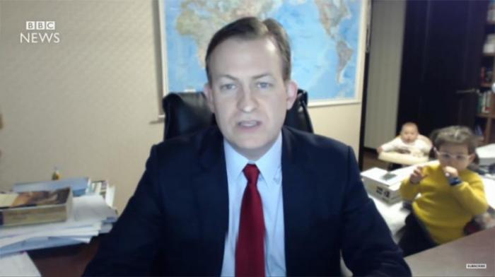 Профессор давал интервью каналу BBC но тут в комнату ворвались дети