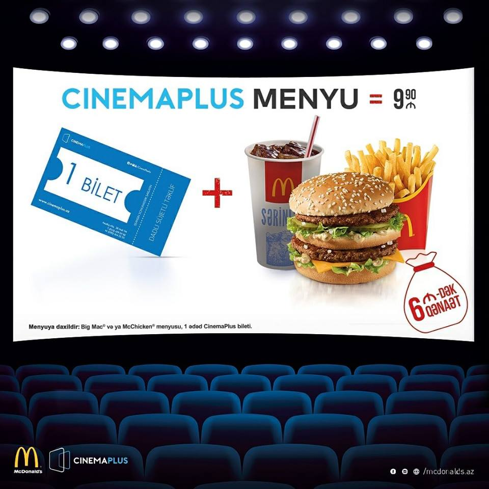 В рамках этого «Вкусно-сюжетного Предложения» («Dadlı Süjetli Təklif»)   посетителям всех ресторанов всемирно известной сети предлагается всего за 9. 90 манат приобрести одно меню, представляющее собой набор продуктов McDonald's и подарков от CinemaPlus. Новое меню CinemaPlus состоит из 1 бургера (Big Mac или McChicken), 1 среднего Френч Фрайз, 1 среднего прохладительного напитка и 1 билета в кино. Таким образом, любители McDonald's смогут сначала посетить ресторан, а затем, воспользовавшись полученным билетом посмотреть любимый фильм в одном из любимых кинотеатров CinemaPlus.