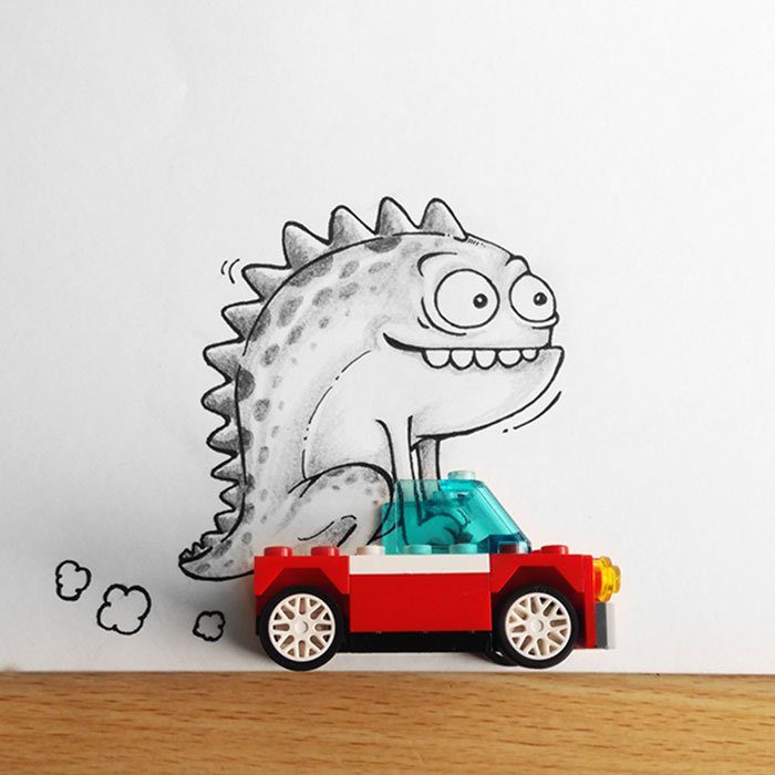 Хавьер Перес (Javier Perez), художник-иллюстратор из Эквадора, однажды натолкнулся на курьёзное совпадение. Живой цветок упал на его рисунок, да так удачно, что своими очертаниями продолжил композицию. Этот прием настолько понравился творцу, что он увлеченно стал экспериментировать с другими предметами из нашей реальной повседневной жизни, прикладывая их к своим наброскам карандашом. В итоге родилась целая коллекция работ, где саморезы выступают в виде колючек ежика, вилки заменяют стены Пизанской башни, а воздушный шарик изображает плафон от лампочки. Предлагаем вам добавить немного позитива в свой день именно серией веселых дурачеств от эквадорского карикатуриста. Художник Javier Perez создает свои шедевры в течение нескольких минут. Конечно, работа эта не включает в себя написания нескольких томов от руки или накладывания нескольких тысяч мазков на полотно, но, несомненно, тут тоже нужен талант.