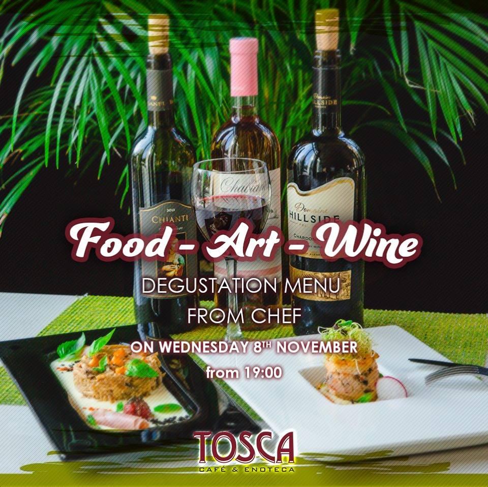8 ноября в Tosca пройдет мероприятие, проводимое шеф поваром ресторана Джиованни Таволаро, под названием "Food.Art.Wine"! Natavan Gallery под руководством Натаван Алиевой представит вам творчество Бахруза Кангарли, под аккомпанемент джазовой музыки.