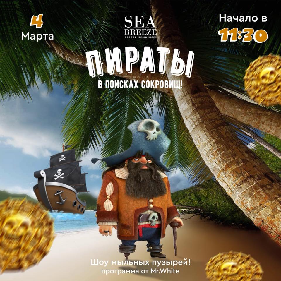 Кто в детстве не мечтает о приключениях, поиске сокровищ, о путешествиях в дальние страны? Дорогие родители, ваши детишки смогут осуществить эту мечту в компании настоящих пиратов! Sea Breeze подготовил для ребятишек новое шоу – «Пираты в поисках сокровищ»! Детей ждет захватывающая программа от Mr.White, а также мыльное шоу!